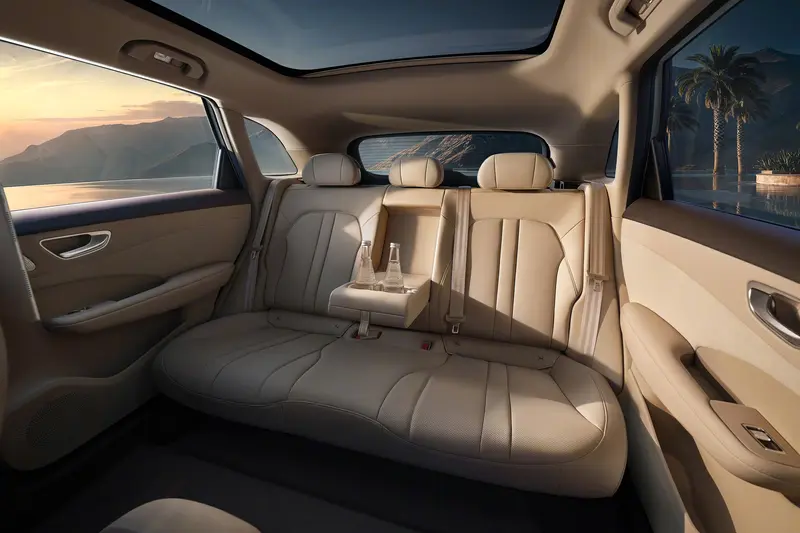 ภายในห้องโดยสารมาพร้อมเรือนไมล์ดิจิทัลและหน้าจอกลางแบบลอย พวงมาลัยสามก้านทรงแบนที่ฐาน มีแท่นชาร์จไร้สายและซันรูฟพาโนรามา ผู้โดยสารแถวหลังได้พนักวางแขนและหน้าจอบันเทิงเฉพาะสำหรับหลัง